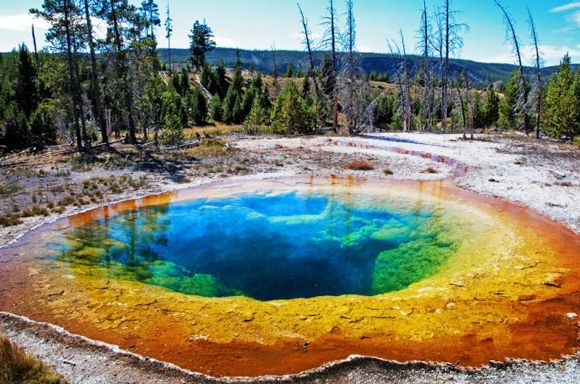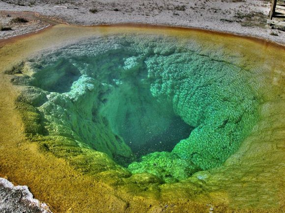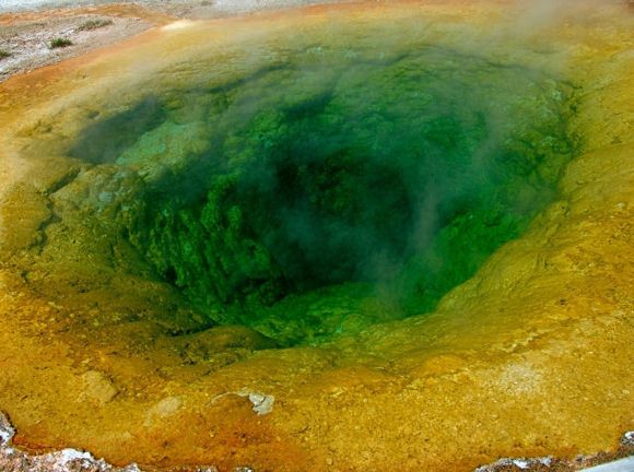 美國著名的黃石公園有數(shù)以千計(jì)的溫泉,這些溫泉碧藍(lán)澄澈,水霧蒸騰;上百個(gè)間歇泉噴射著沸騰的水柱。Morning Glory Pool溫泉在其中是最令人心馳神往的。Morning Glory Pool是熱泉,它的溫度一般是要比間歇泉低得多,所以其中能夠繁衍出豐富的藻類。Morning Glory Pool溫泉水溫在85℃時(shí),泉內(nèi)藻類為白色;82℃時(shí)呈現(xiàn)肉紅色;74℃時(shí)淺黃色;68℃時(shí)就變成了黃綠色。神奇之處就在于溫泉可隨著溫度的變化,顏色作隨相應(yīng)的改變。