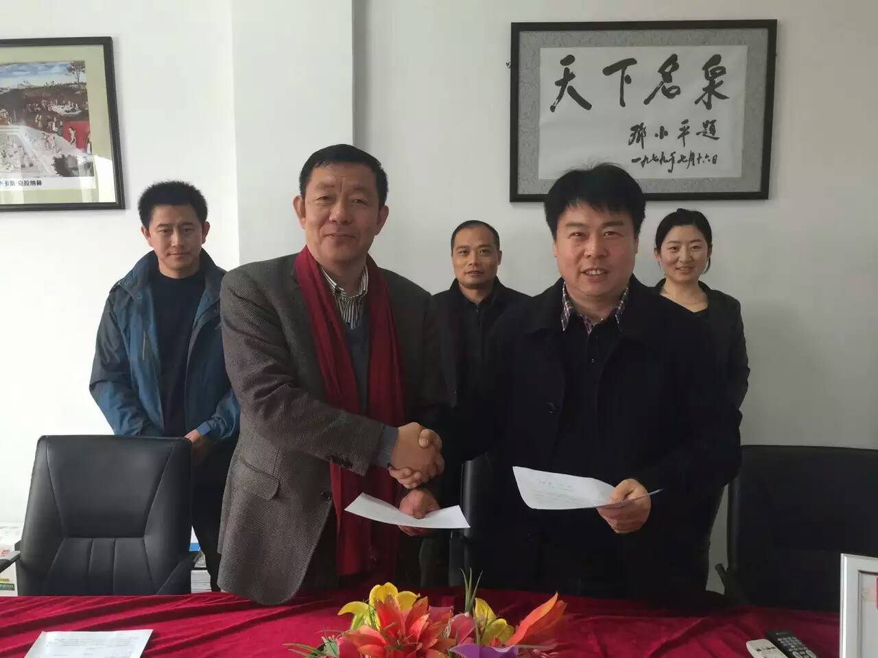 連邦溫泉科技董事長連棟與大連大學(人文學部)張言東書記簽定就業實習基地合作協議
