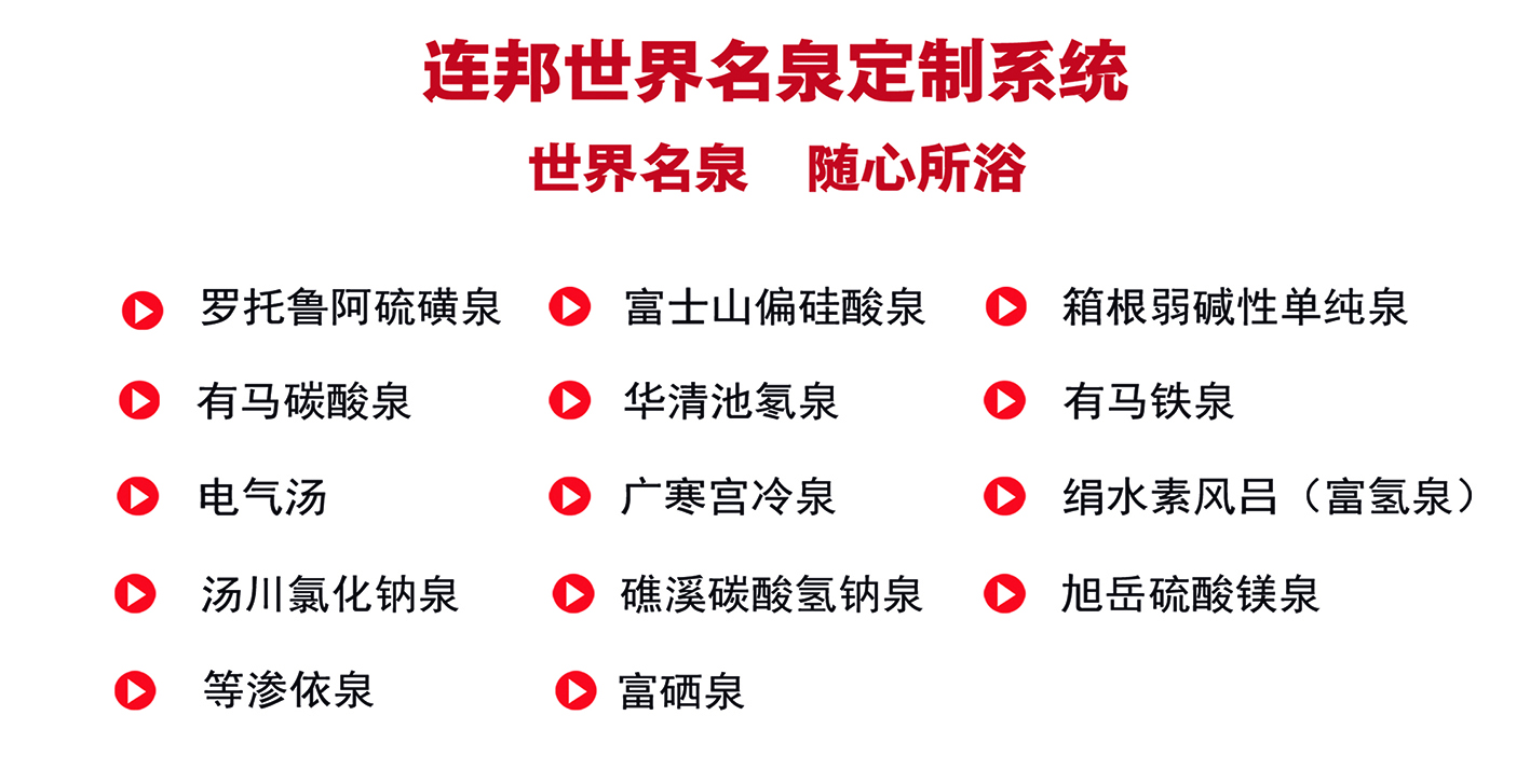 連邦人工溫泉設(shè)備世界名泉定制系統(tǒng) 14大名泉定制 打造多功能人氣溫泉組合