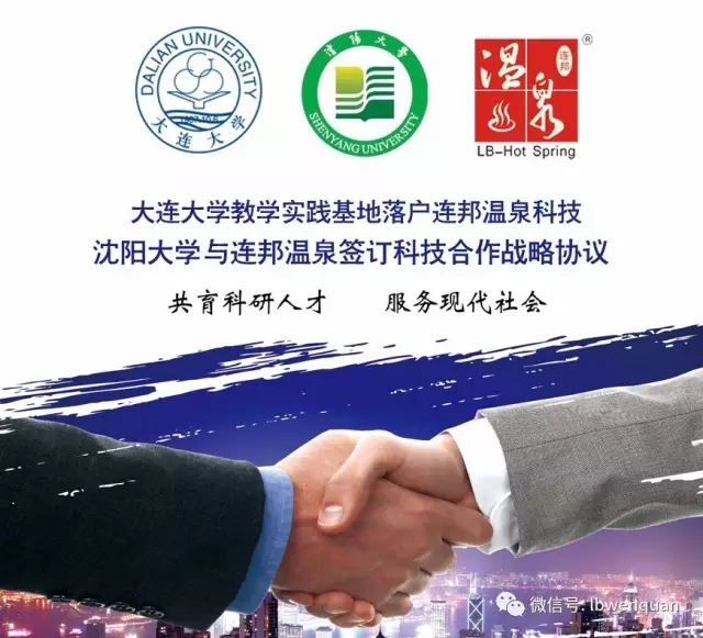 2017年1月14日,連邦溫泉科技與沈陽大學正式簽署科技合作戰略協議,此次教學實踐基地的建立,是繼大連大學之后,又一省內高校與連邦建立長期穩定的科技合作關系。將高等院校的人才與企業的科研優勢相結合,一直是連邦溫泉科技在人才儲備方面所堅持的原則,此次合作為連邦人才引進提供了可靠有利的保障,連邦溫泉也將利用溫泉實驗設施和諸多合作客戶為校方提供良好的科研條件和校外實訓基地,合作共建產學教結合示范基地,實現全面合作,共同發展。