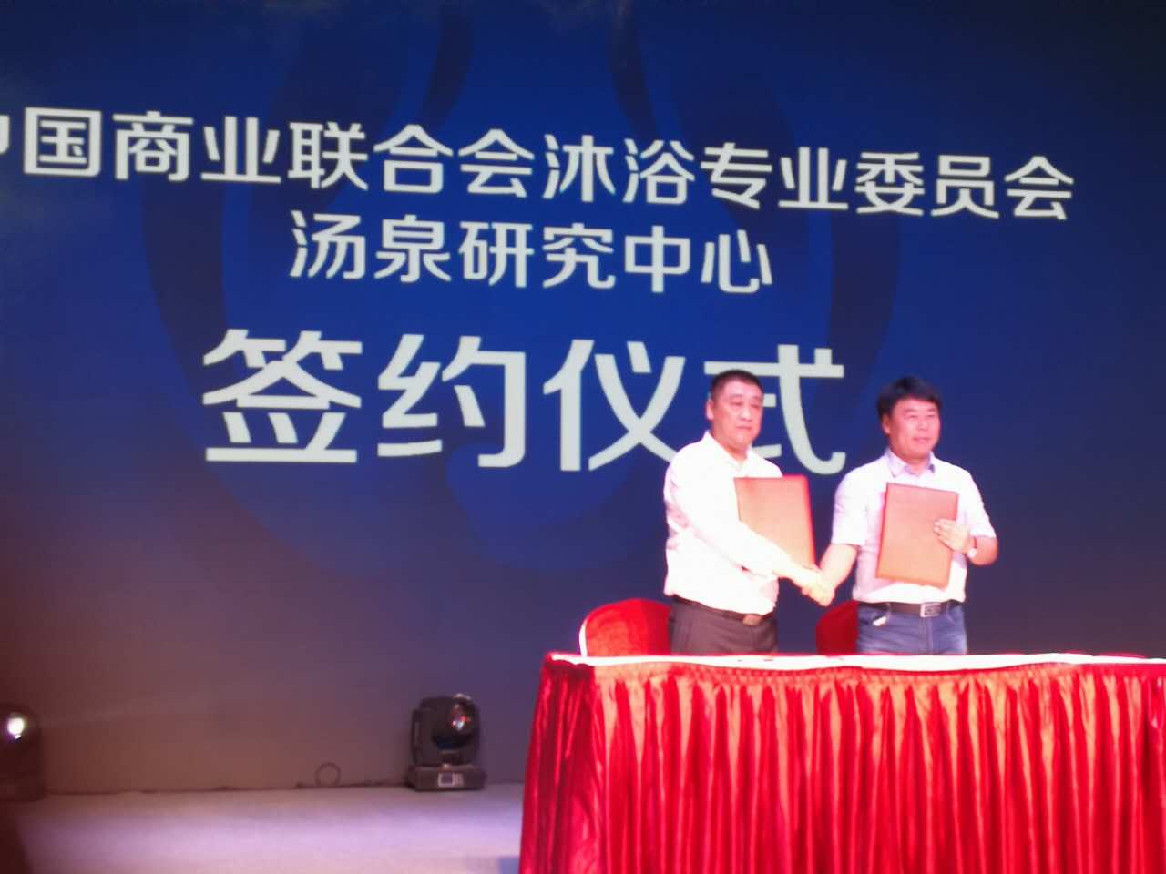 8月4日,于西安召開的2017中國溫泉沐浴創新產業西部論壇上,中沐委會長李凱與連邦溫泉科技董事長連棟就成立湯泉發展中心達成合作,李凱任名譽主任,連棟任主任,王福祥任顧問,聯合成立中沐委湯泉發展研究中心,這是我國首個以湯泉及其附屬產品為課題的綜合性研究機構和服務機構,必將為我國湯泉產業的良性發展產生深遠影響。