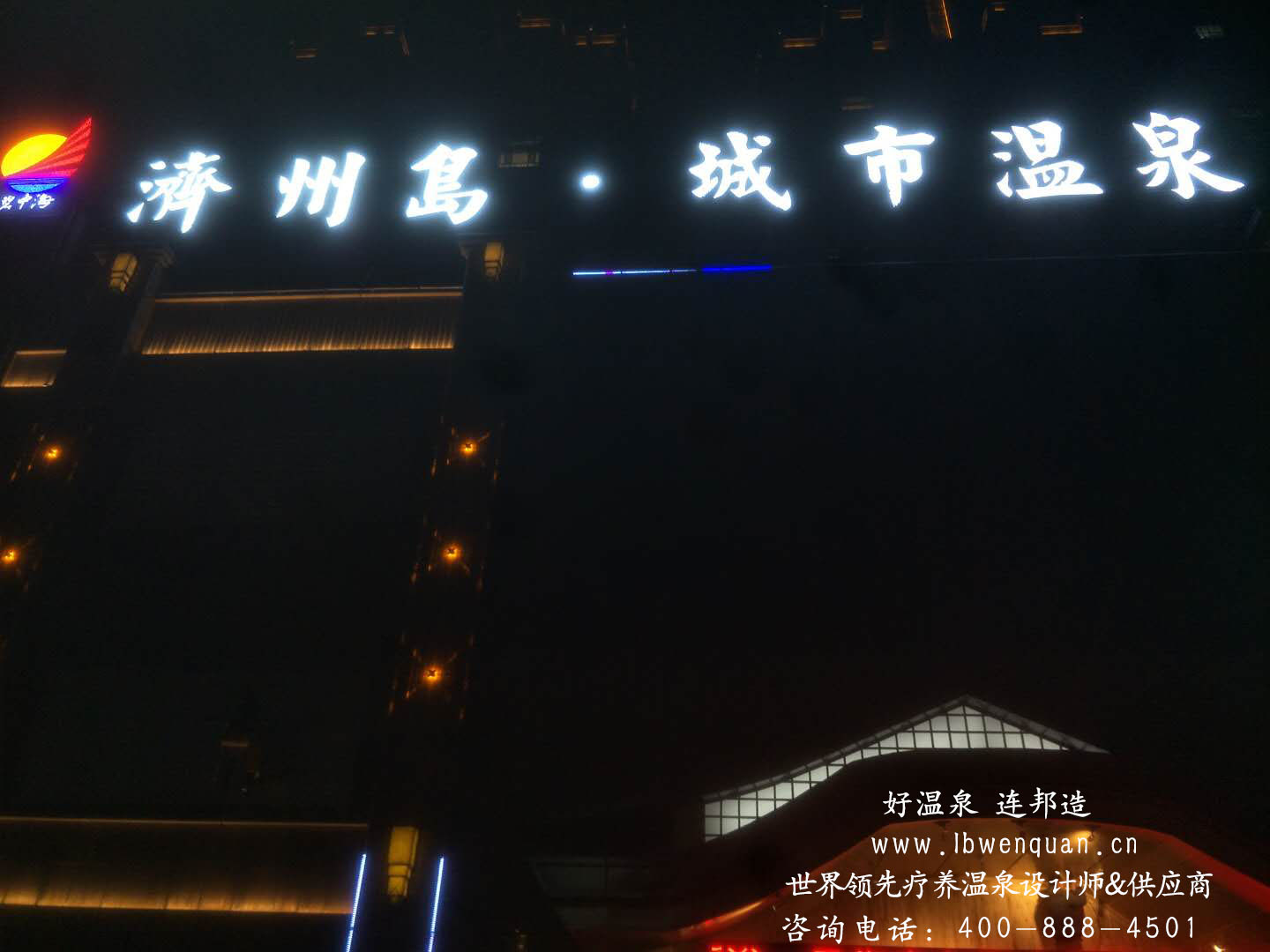 濟州島溫泉,占地面積1萬多平米,匯集:日式溫泉,韓式料理及自助餐,大型水樂園,韓式汗蒸休閑廣場(含紅外線理療,窯洞,玉石房,蒙古包汗蒸,巖鹽房等),飄雪房,露營區,兒童淘氣堡,動漫城,迷你唱吧,3D影院,茶道,書吧,氧吧,網吧,美體塑形,精品房等一站式,家庭式、娛樂式集成的體驗館。