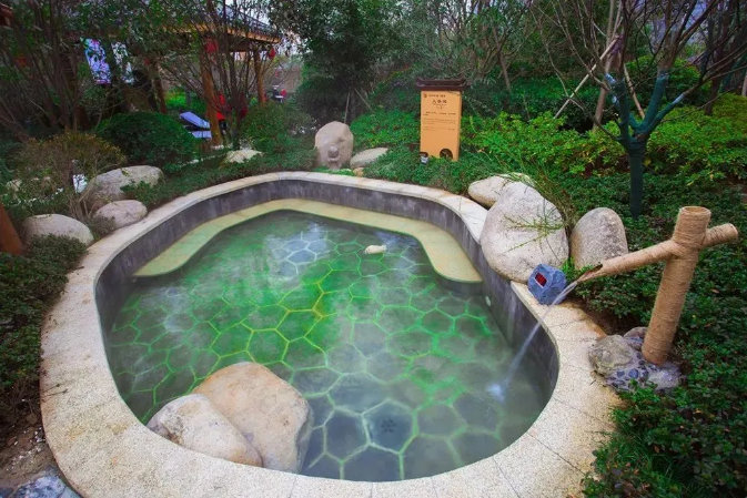 泡池掩映在郁郁蔥蔥的樹(shù)林花草間