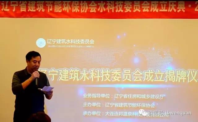 遼寧省建筑節能環保協會會長宋懷亮在慶典致辭中講到,今天遼寧建筑水科技委員會成立了,這是我省水科技履歷的一件喜事,我代表業務主管單位和遼寧省住房和城鄉建設廳的環保協會表示祝賀,同時,對委員會的發展提出以下幾點建議:一、要抓好委員會成立后的自身建設,找到強有力的委員會的秘書班子,委員會的領導都是省內有影響力的企業家,會長由連邦溫泉科技的董事長連棟出任,日常工作非常繁忙,希望委員會建立一支強有力的委員會秘書和領導班子,這樣才能保證委員會各項工作、計劃目標的順利完成。二、主動當好政府參謀助手,隨著國家對于協會、商會政策的推進,將有更多的工作向協會轉移,將更多的向協會購買服務,委員會要主動出擊,只要是水科技領域的課題及項目培訓都要多渠道的爭取,真正發揮政府和企業的橋梁紐帶作用。三、加強為會員服務的意識,為會員服務是委員會立會之本,要擺正自身的位置,堅決杜絕二政府的錯誤意識,將始終為會員服務放在首要位置,要加強與國家省市三級建設科技環保質監部門的聯系,依托政府支持,積極面向會員開展政策咨詢服務,幫助企業解決在財政補貼、項目立項、標準制定、獎項評審、認證辦理、資質辦理等出現的問題。要開展業務咨詢培訓,要強化技術產品推廣服務,辦好水科技會刊、水科技博覽會、水科技的網站,這些工作在委員會會長連棟的安排下已經開展起來了,要及時反映會員訴求,通過會員接待走訪、調研、座談交流等多種形式,積極了解廣大會員的呼聲訴求,加強與有關部門的聯系與協調,幫助會員單位排憂解難,對會員提出的共性問題提醒有關部門研究出臺一系列的政策規定。總之,今天水科技的領導及秘書處一定要認真履行職責,不辜負大家的期望,努力做到為會員所想,利為會員而謀,把省建筑水科技委員會辦成政府和廣大會員信的過的會員之家。